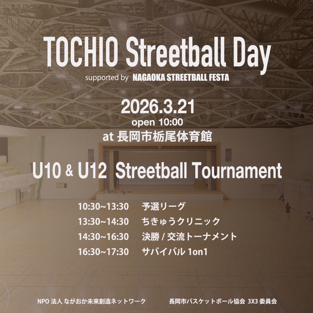 TOCHIO Streetball Day ~supported by NAGAOKA STREETBALL FESTA~開催日 2026/03/21 ~ 2026/03/21 -