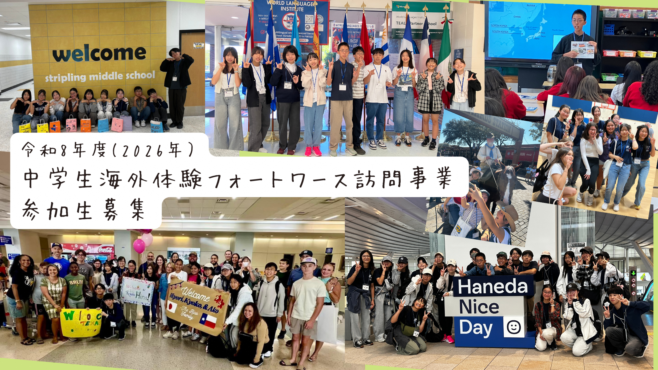 令和8年度 中学生海外体験フォートワース市訪問事業[熱中!感動!夢づくり教育事業]開催日 2026/08/08 ~ 2027/02/13 -
